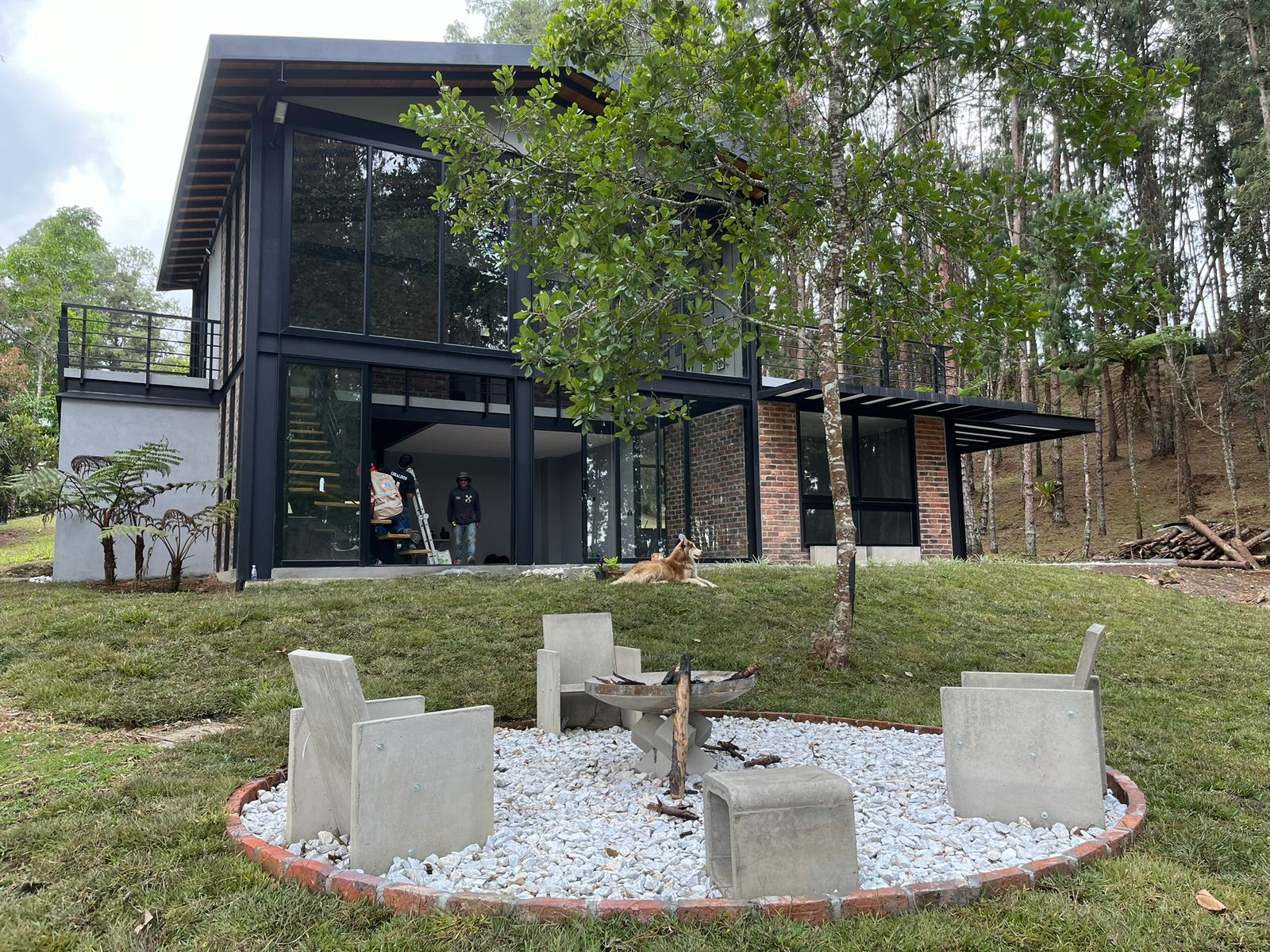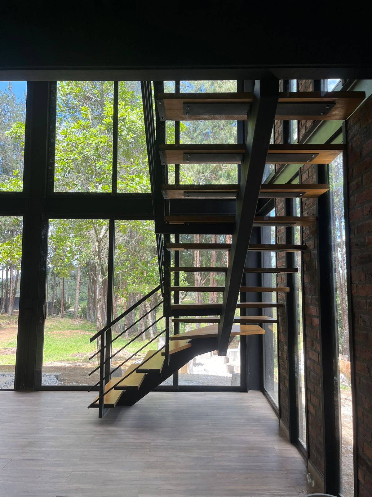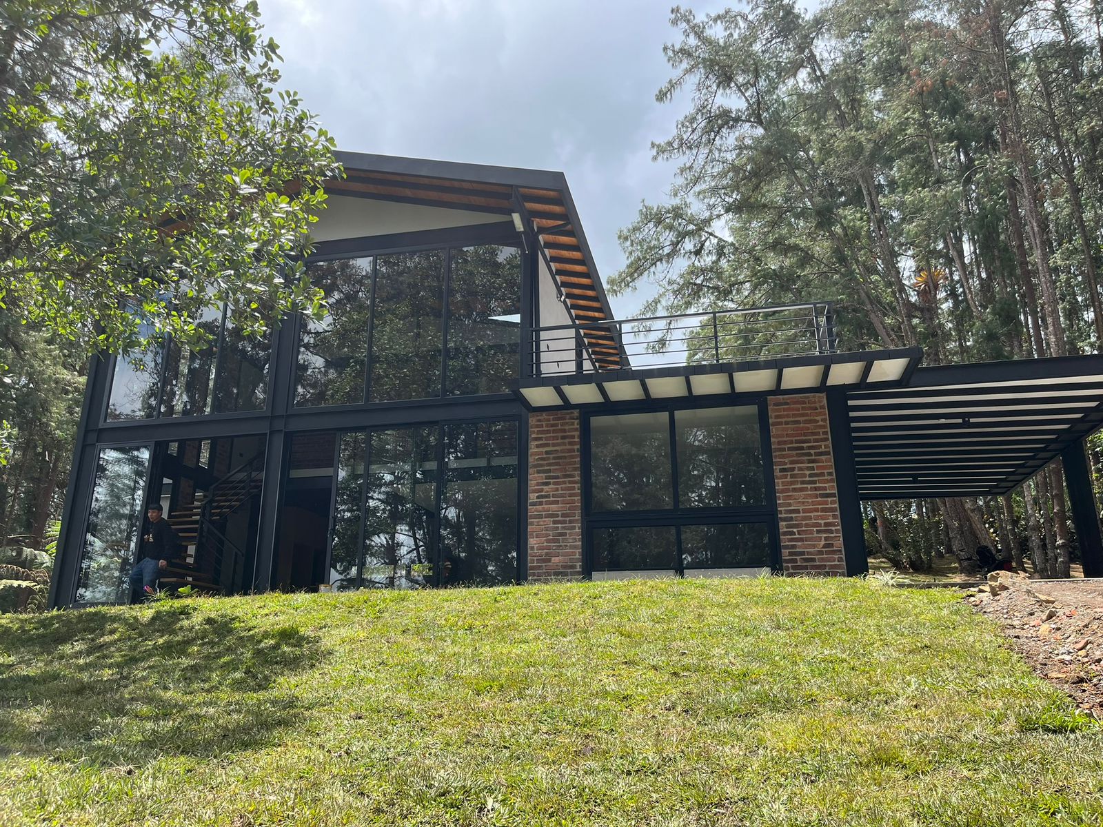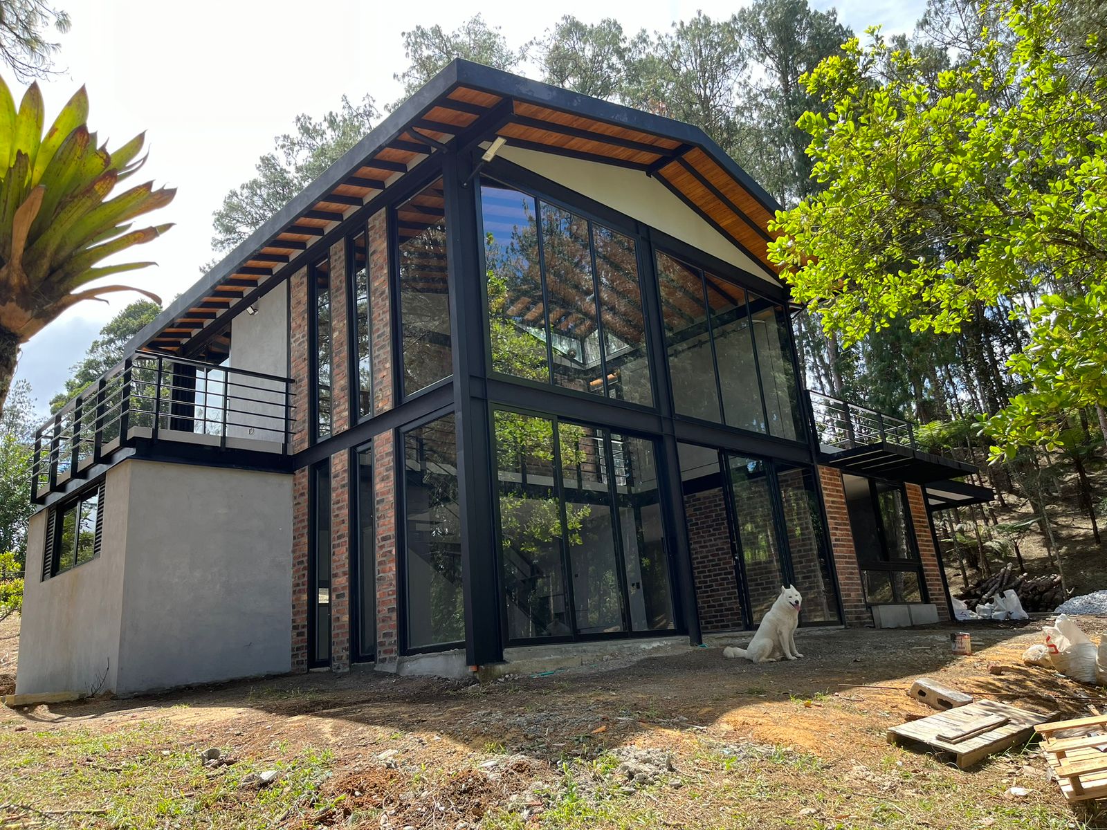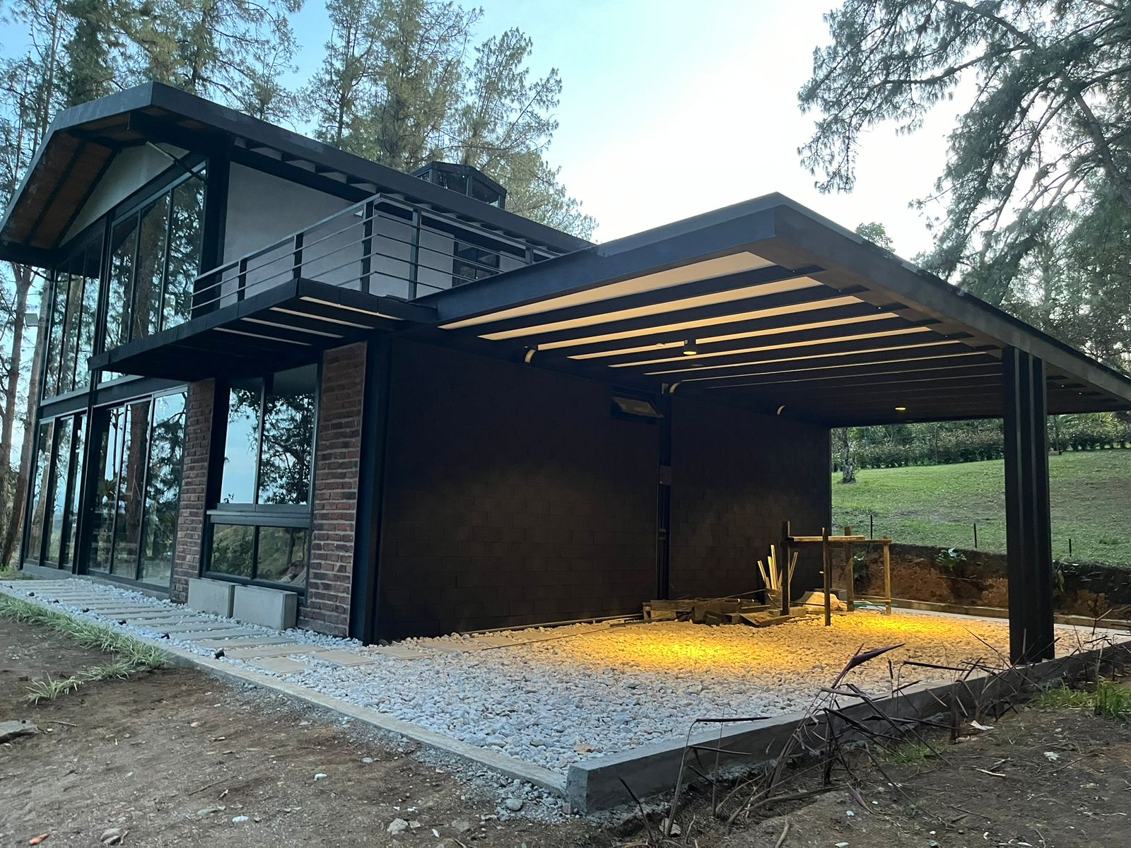 Diseñamos un ventanal panorámico, que permite una gran entrada de luz natural y una conexión directa entre el interior y el entorno exterior.Desde el inicio entablamos muy buena relación con los clientes, se pretendía un Glampin pero en la etapa de diseño escuchando las necesidades de los propietarios y salió esta magnífica casa con mucha amplitud y estilo, es una nuestras mejores inspiraciones arquitectónicas que no solo diseñamos sino que construimos hasta puerta cerrada.
